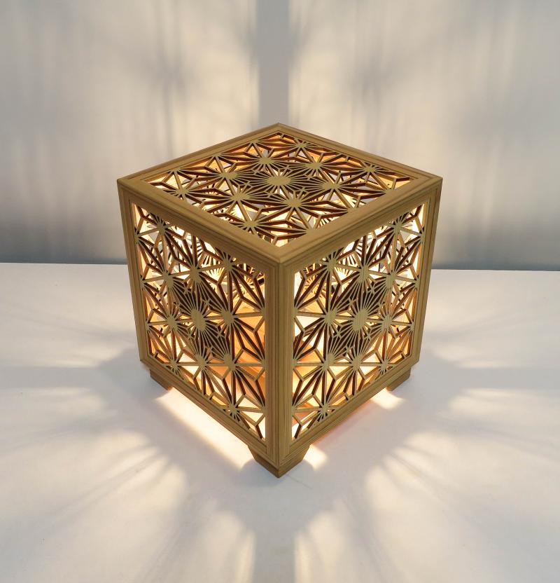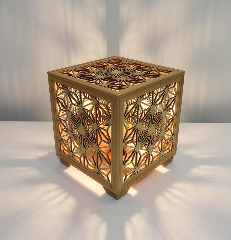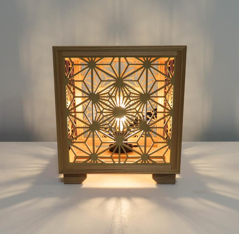 この自治体のポイントについてチョイス公式ポイント交換対象 レーザー行灯「趣」キューブ 八重桜と麻の葉組子模様
