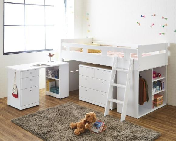 ベッド(ミドルタイプ)・デスク・チェスト・ハシゴのセットとなっており、