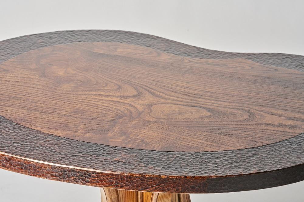 天板は1枚板で桐を使い豆型で淵は鎌倉彫りをしています。丸みがあるので優しい感じです。