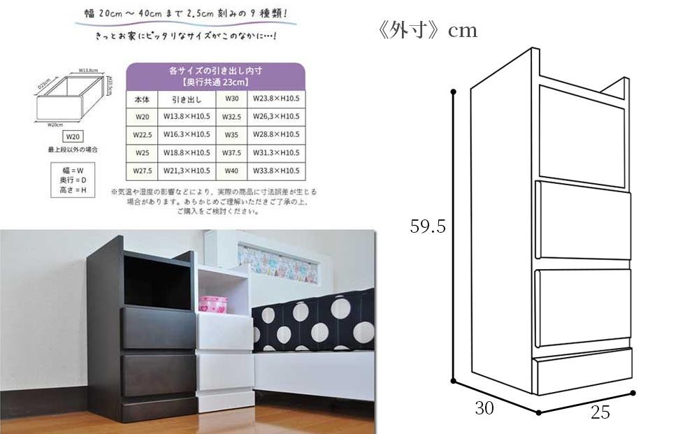 サイズは、幅 25cm・奥行 30cm・高さ 59.5cmです。