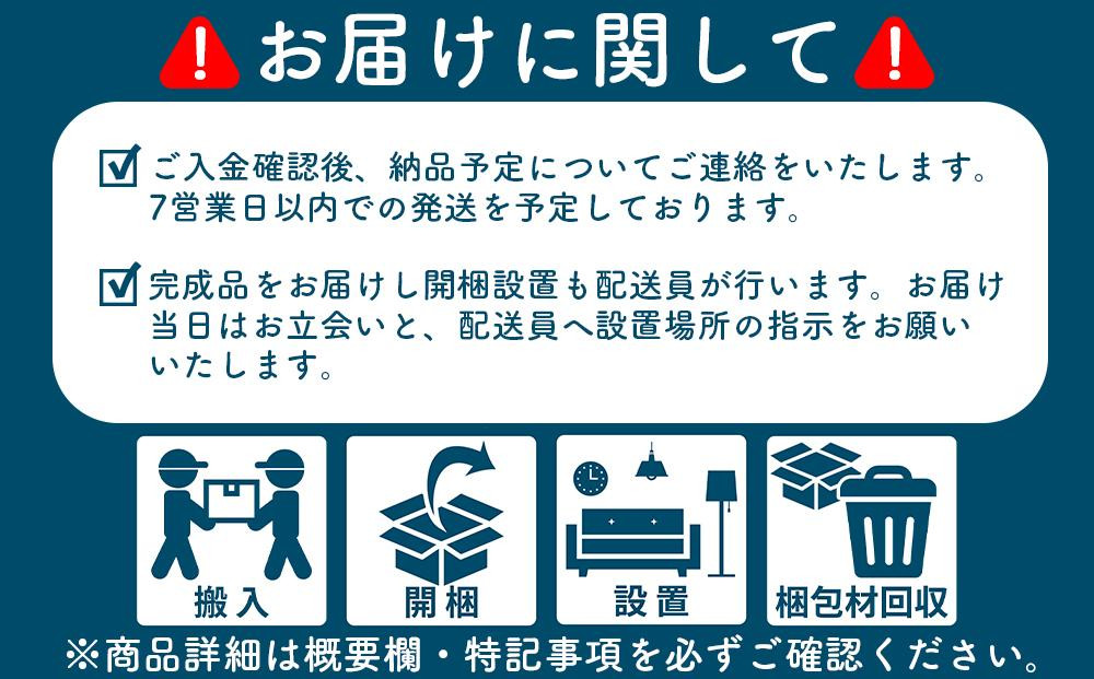 (一部組立が必要な箇所は配送員が組立し、完成した商品を設置いたします。)