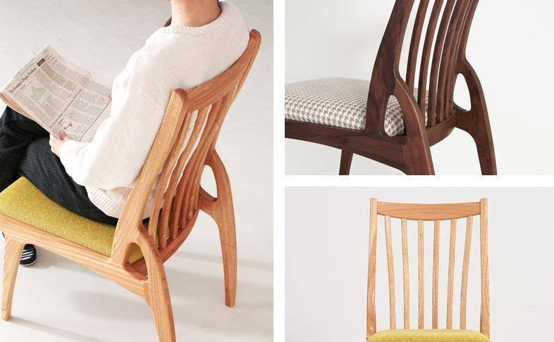 体のラインに沿った曲線の背もたれにより自然な姿勢で座れ、毎日の食事や憩いの時間をより良いものに変えます。
