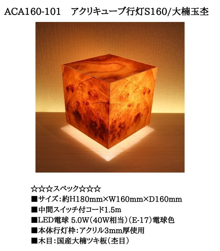この自治体のポイントについてチョイス公式ポイント交換対象 ACA160-101 アクリキューブ行灯S160 銘木ツキ板(大楠玉杢)LED電球