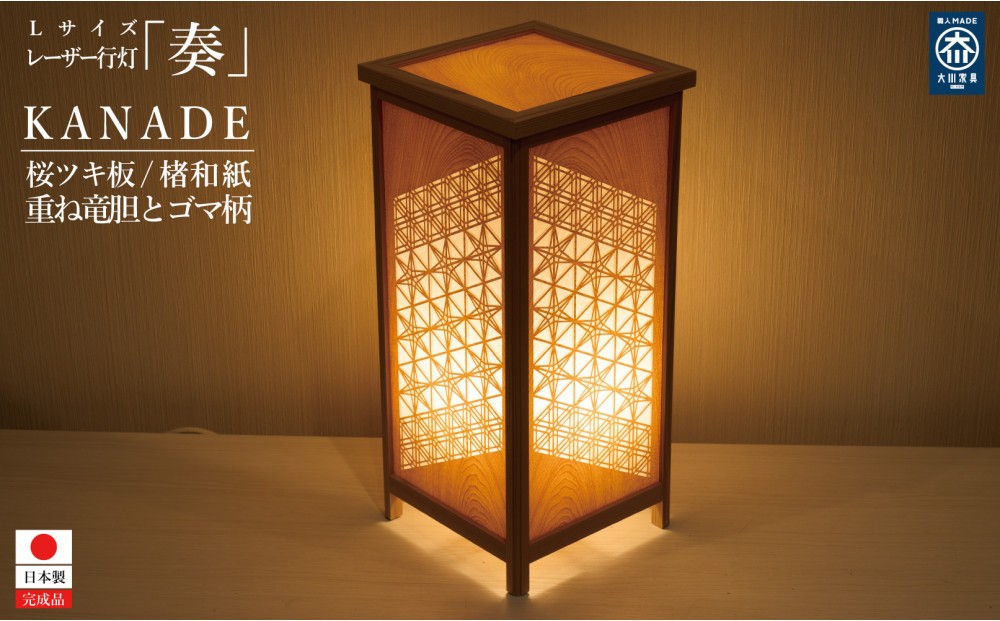 チョイス公式ポイント交換対象 KND-450W-008 レーザー角行灯「奏」 重ね竜胆とゴマ柄デザイン1/桜ツキ板/楮和紙貼り