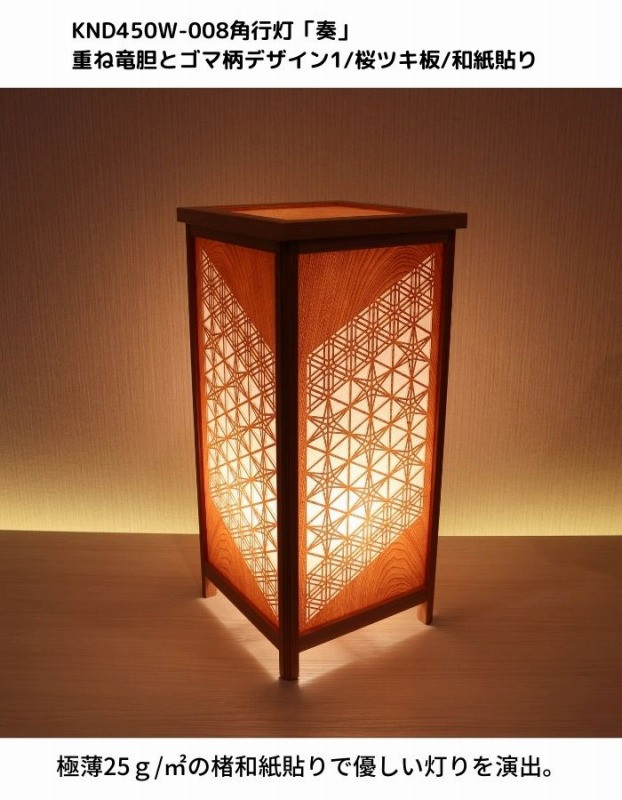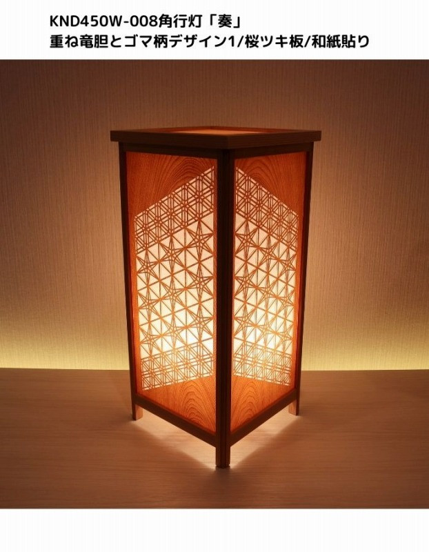 この自治体のポイントについてチョイス公式ポイント交換対象 KND-450W-008 レーザー角行灯「奏」 重ね竜胆とゴマ柄デザイン1/桜ツキ板/楮和紙貼り