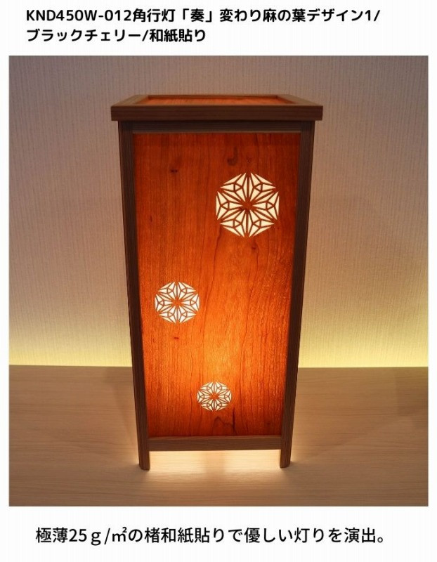 この自治体のポイントについてチョイス公式ポイント交換対象 KND-450W-012 レーザー角行灯「奏」 変わり麻の葉デザイン1/ブラックチェリー/楮和紙貼り