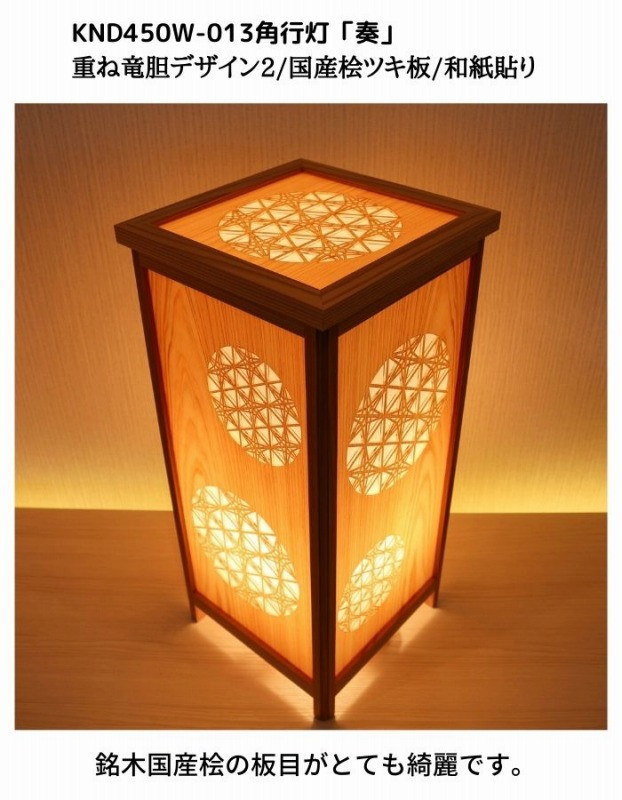 この自治体のポイントについてチョイス公式ポイント交換対象 KND-450W-013 レーザー角行灯「奏」 重ね竜胆デザイン2/国産桧/楮和紙貼り