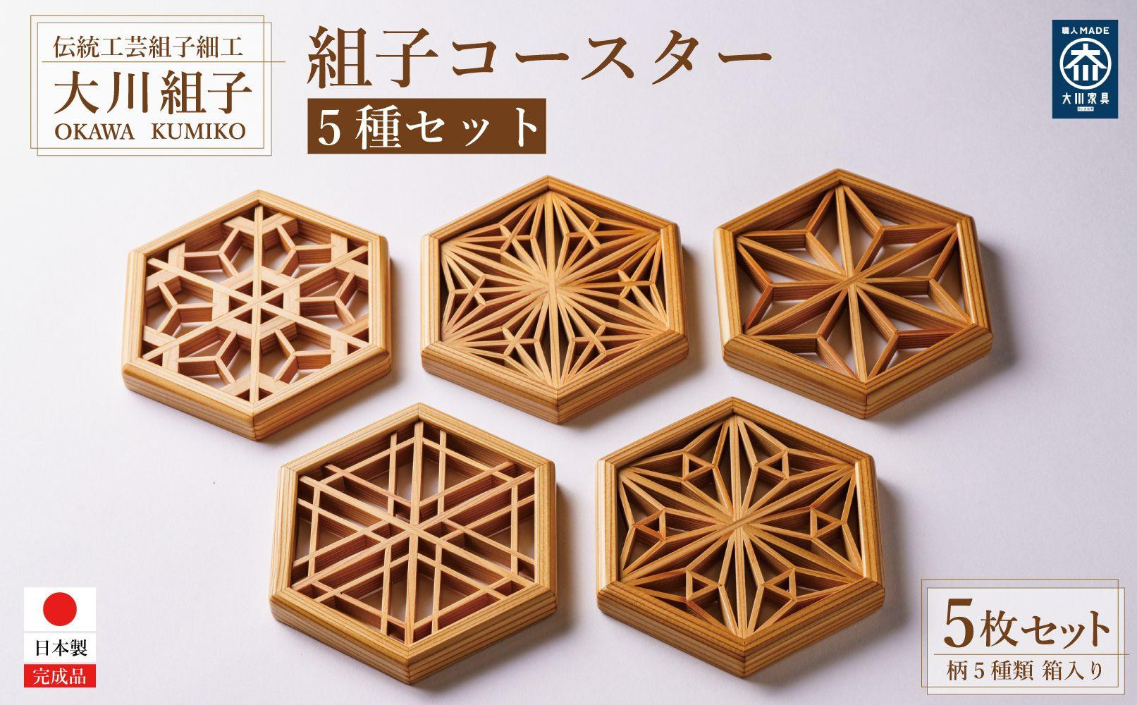 大川組子のデザイン性の高さは、職人の手仕事による技の結晶。 そのキリリと研ぎ澄まされた伝統の表情は、静かに、そして確かな存在感を演出します。 次世代へと受け継がれていく住宅においては、その圧倒的な技術の粋を尽くした、まさに資産とも言うべき贈り物。 文化を後世へ脈々と遺しながら、日々の暮らしを彩ります。 組子職人が丹精込めて作りました。 角麻の葉 組子コースター5枚セットです。 オブジェとして組子をお楽しみいただくこともおすすめです。味わい深い大川組子を是非お使い下さい。 ※使用後は水分をふき取り、乾燥させてお使い下さい。 原材料:国産杉 製造地:福岡県大川市大字向島1037-1 【商品に関するお問い合わせ先】 木下木芸 0944-86-6328 http://kinoshitamokugei.com/