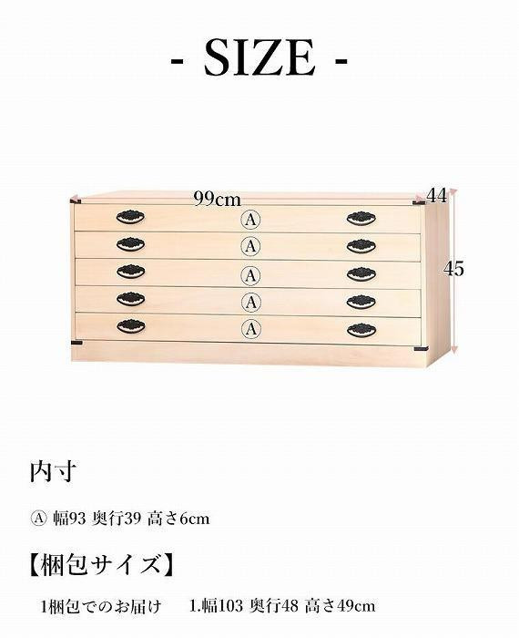 | 容量 | ■表面材 桐 ■サイズ 幅99cm×奥行き44cm×高さ45cm 引出し内寸:幅93cm×奥行き39cm×高さ6cm |
