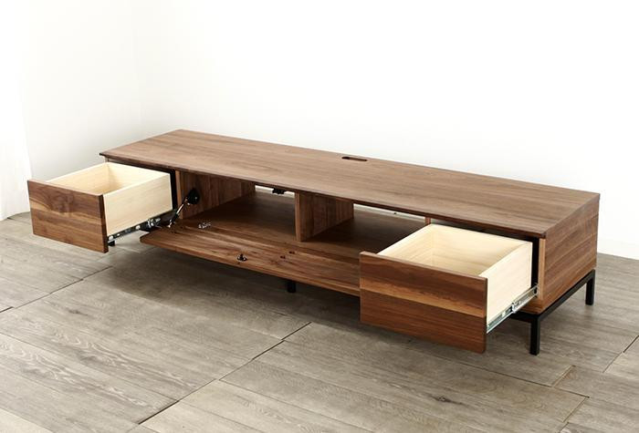 天然木の本体と金属脚を組合せた、シンプルモダンなテレビボード。