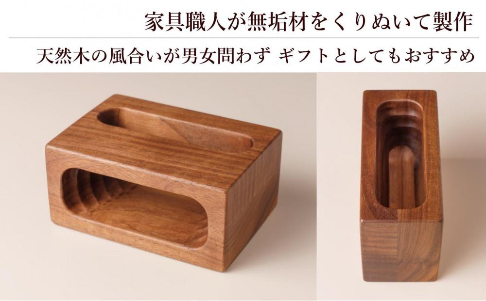 天然木の風合いを楽しめる無垢材をくりぬいて作ったスマホスタンドです。置くだけで音楽を流しながら画面を見ることができる電源不要のスピーカーとしても使えます。