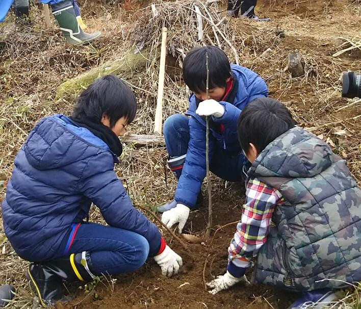 植樹イベントには子どもたちにも参加してもらい、参加した子ども達が成人する約15年後に成木となっているセンダンを伐採します。