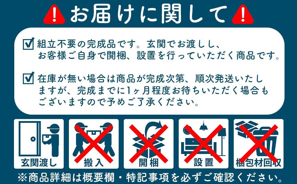 設置不可等が理由での返品・キャンセルのご対応はいたしかねます。