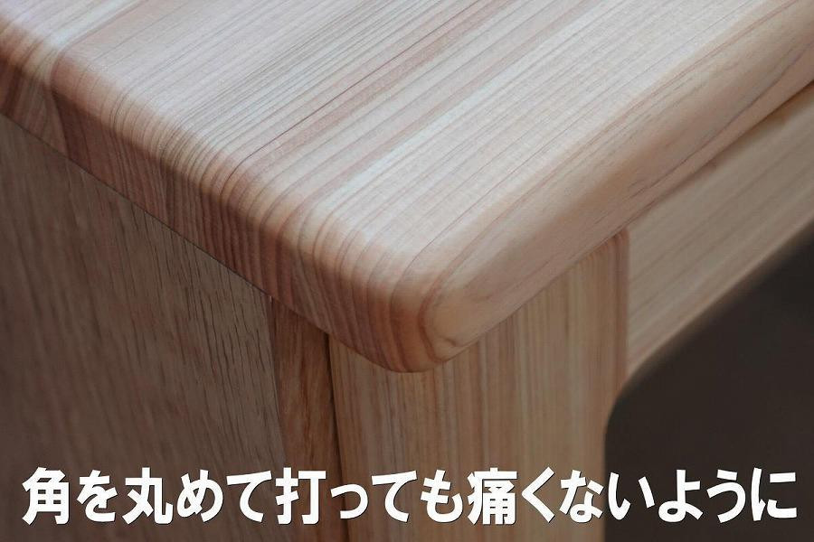 ・天板、前板に国産ヒノキ無垢材を使った優しい素材