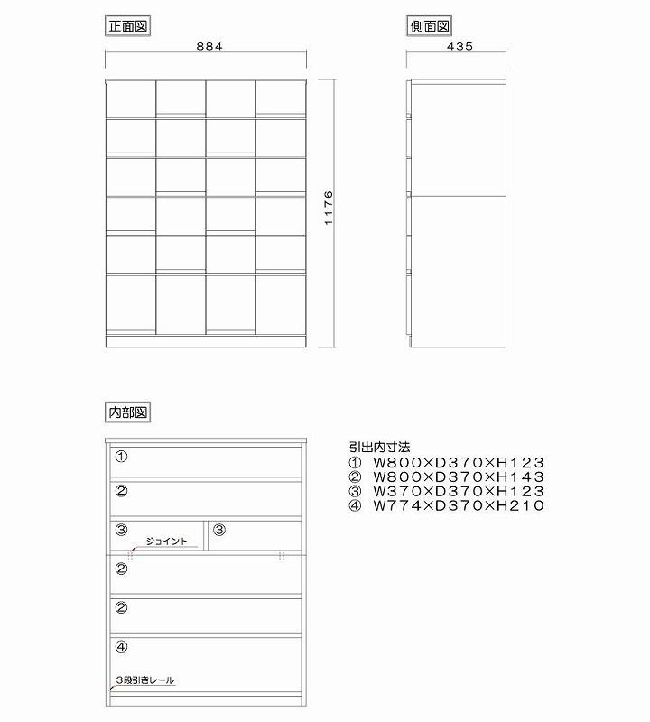 | 容量 | ■商品のサイズ(mm表記) 本体寸法:W884×D435×H1176 ■仕様 表面材:天然木無垢 天板・側板:突板貼り 塗装:ウレタン塗装 引出し:桐箱組(あり組) 垣板厚19mm/底板5mm ※天然木の為、都度木目が異なります。 |