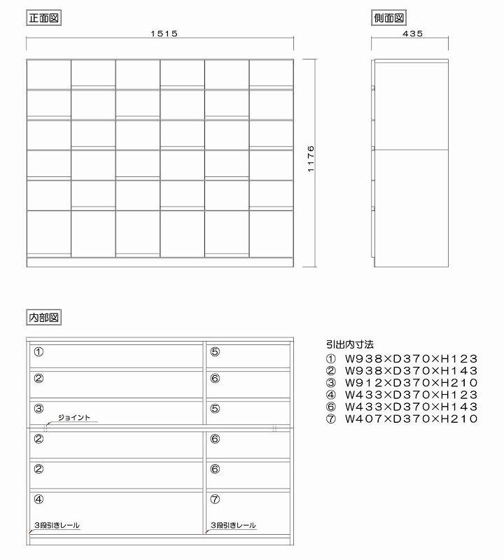 | 容量 | ■商品のサイズ(mm表記) 本体寸法:W1515×D435×H1176 ■仕様 表面材:天然木無垢 天板・側板:突板貼り 塗装:ウレタン塗装 引出し:桐箱組(あり組) 垣板厚19mm/底板5mm ※天然木の為、都度木目が異なります。 |