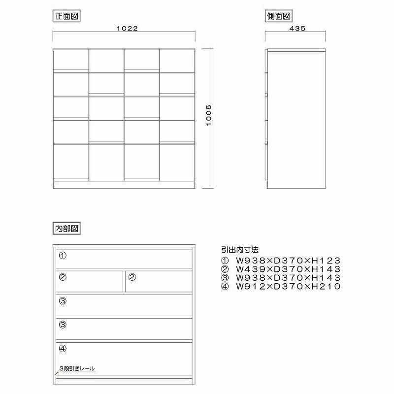 | 容量 | ■商品のサイズ(mm表記) 本体寸法:W1022×D435×H1005 ■仕様 表面材:天然木無垢 天板・側板:突板貼り 塗装:ウレタン塗装 引出し:桐箱組(あり組) 垣板厚19mm/底板5mm ※天然木の為、都度木目が異なります。 |