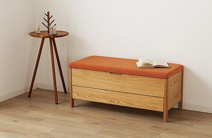 脚高でスマートなデザインながら、大容量の収納力を兼ね備えたベンチタイプのチェスト。