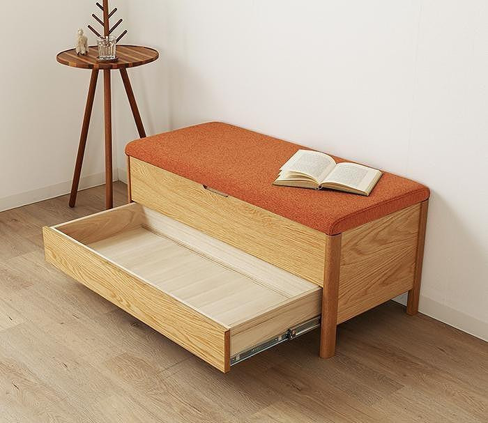 脚高でスマートなデザインながら、大容量の収納力を兼ね備えたベンチタイプのチェスト。