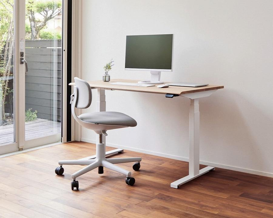 ホワイトフレームとの組み合わせは、ワークスペースに洗練された雰囲気と無垢材による上質感をもたらします。