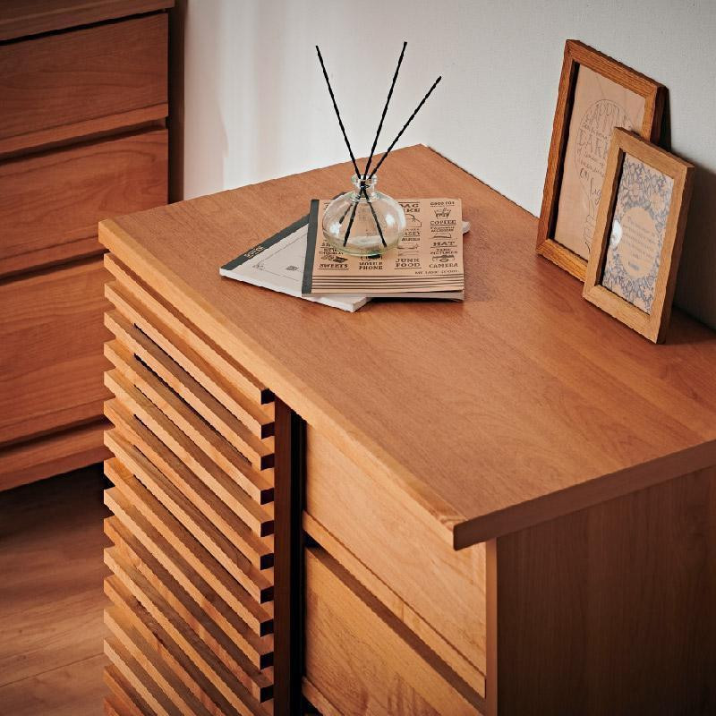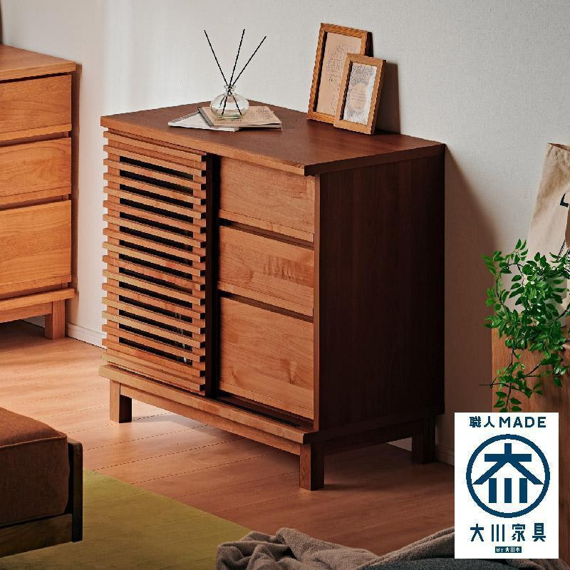 | 容量 | 【カラー】 ブラウン 【サイズ】 ●全体:W80×D44×H69.5(+脚部7.5)cm 【材質】 本体:MDF強化シート 前板:アルダー無垢材(オイル塗装) 脚部:アルダー無垢材(オイル塗装) |