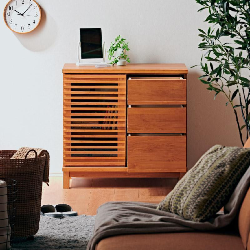 この自治体のポイントについてチョイス公式ポイント交換対象 【Athers/アザース 幅80cmサイドボード ブラウン】★落ち着いた雰囲気のルーバーデザイン