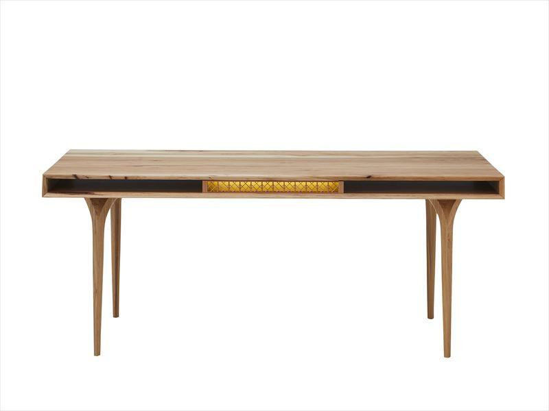 明るい色合いが特徴のヒッコリー材は天板の木目一つひとつにも味わいがあります。