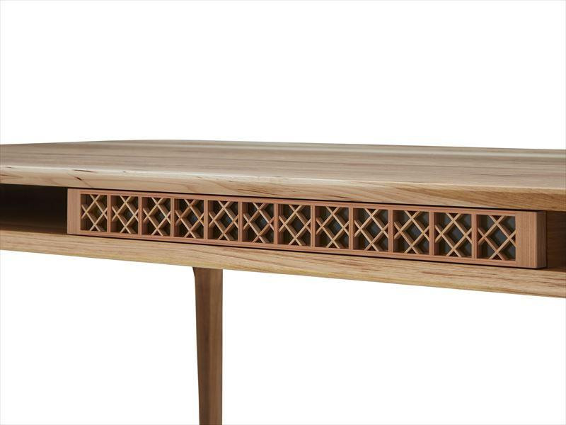 また、天板は箱状になっており、その中央部分には子息繁栄や無病息災を願う「桝つなぎ」と呼ばれるモダンな組子模様を配置。