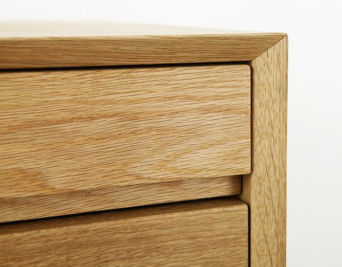 ■引出しの前板と脚部分は無垢材、その他は突板(フラッシュ構造)で製造しております。