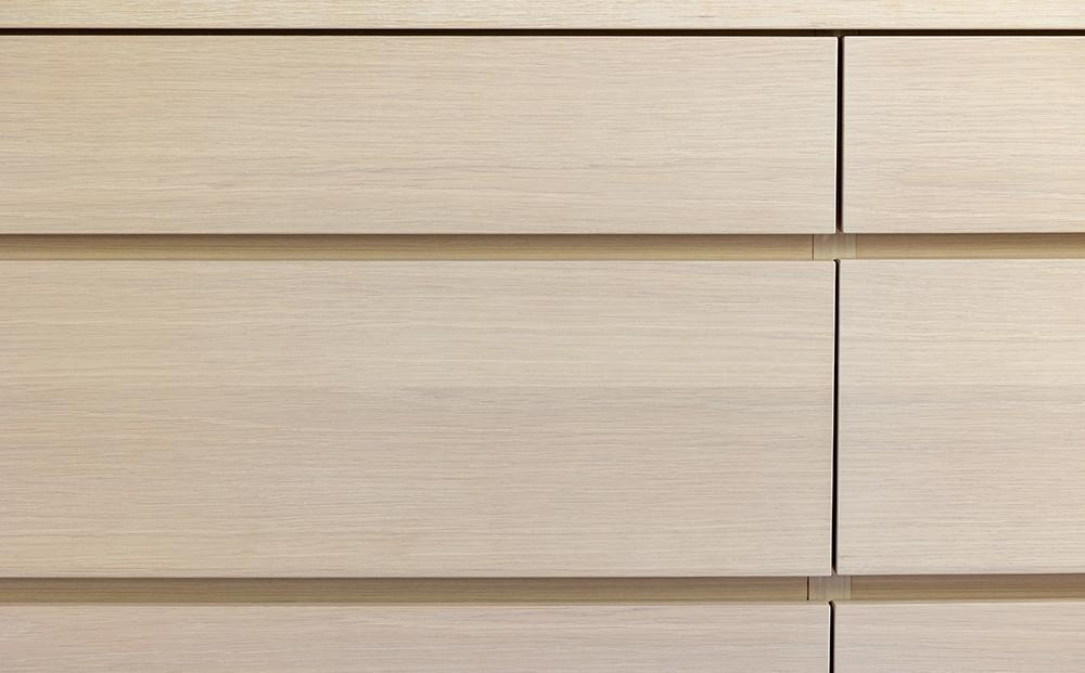 | 容量 | 本体サイズ:1502×400×710 引出内寸:2~3段目・・654×324*×90 引出内寸:最上段・・679×324×125 【材質】 ・本体:天板、引出し前板…ホワイトオーク突板、(内部)リント貼り(4スター) ・本体:側板…プリントMDF貼り ・引き出し内部:側板・先板…桐材(4スター)底板…5mm桐芯突板貼り(3スター) ・本体芯材:パーティクルボード(4スター&3スター) |