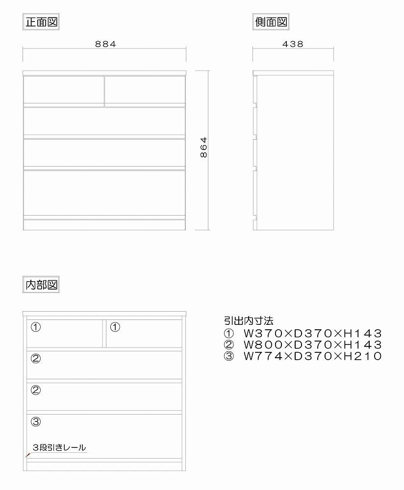 | 容量 | ■商品のサイズ(mm表記) 本体寸法:W884×D438×H864 ■仕様 表面材:ホワイトオーク無垢材 天板:側板:ポリ化粧合板 塗装:ウレタン塗装 引出し:桐箱組(あり組) 垣板厚19mm/底板5mm ※天然木の為、都度木目が異なります。 |