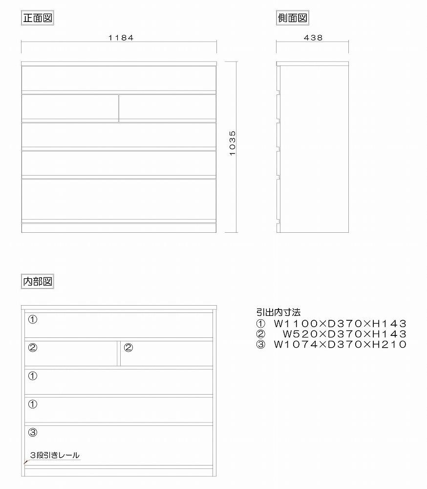 | 容量 | ■商品のサイズ(mm表記) 本体寸法:W1184×D438×H1035 ■仕様 表面材:ウォールナット無垢材 天板:側板:ポリ化粧合板 塗装:ウレタン塗装 引出し:桐箱組(あり組) 垣板厚19mm/底板5mm ※天然木の為、都度木目が異なります。 |