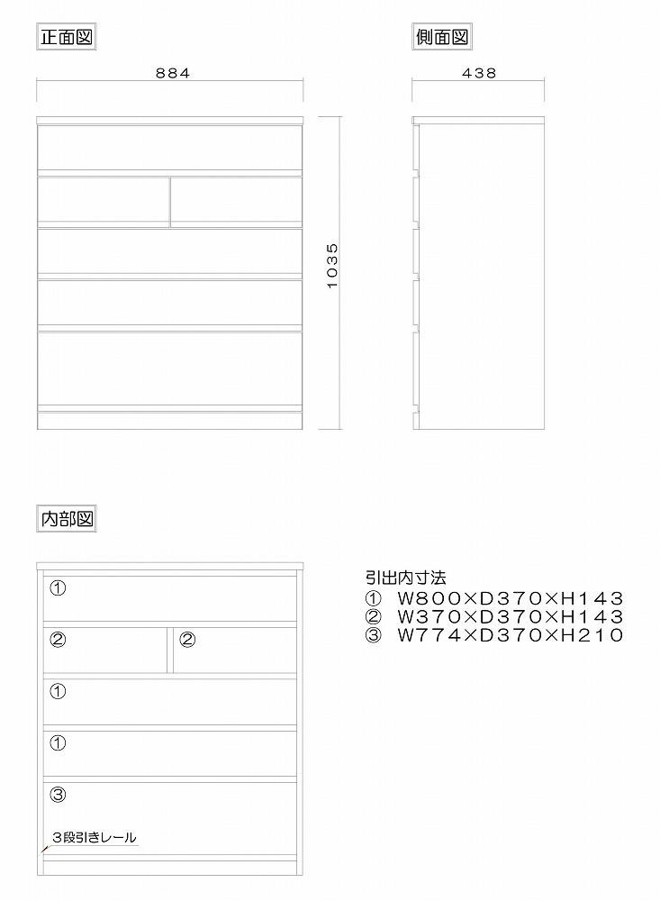 | 容量 | ■商品のサイズ(mm表記) 本体寸法:W884×D438×H1035 ■仕様 表面材:ウォールナット無垢材 天板:側板:ポリ化粧合板 塗装:ウレタン塗装 引出し:桐箱組(あり組) 垣板厚19mm/底板5mm ※天然木の為、都度木目が異なります。 |