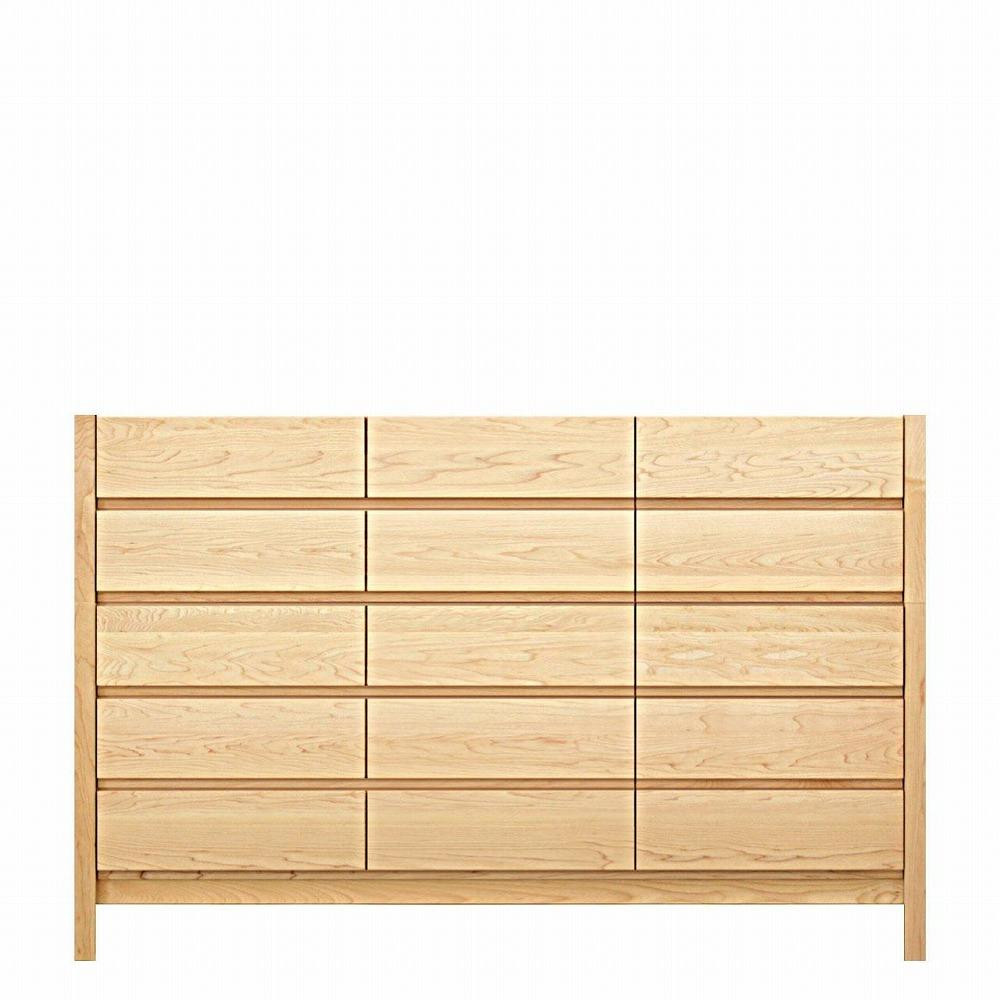 | 容量 | ■商品のサイズ(mm表記) 本体寸法:W1562×D436×H1002 ■仕様 表面材:メープル無垢材 天板・側板:突板貼り 塗装:ウレタン塗装 引出し:桐箱組(あり組) ※天然木の為、都度木目が異なります。 |