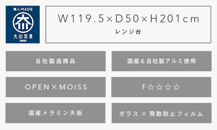 | 容量 | 外寸:幅119.5×奥行50×高さ201cm 引き戸内寸(固定棚より上・下段共通):幅56.4×棚板奥行38.5×高さ65cm 引出内寸:幅51.5×奥行36.5×高さ7cm 深引き出内寸:幅51.5×奥行36.5×高さ18(有効30.5)cm 【素材】 MDF 前板:ピアフォルテ鏡面クリーンイーゴスシート 天板:メラミン天板ポストフォーム仕上げ ブラックガラス(飛散防止フィルム貼り) |