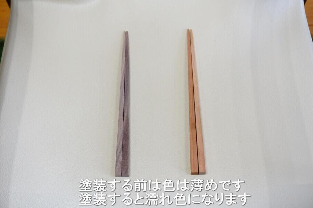 家具で人気の材、ブラックチェリー材のお箸が作れます。