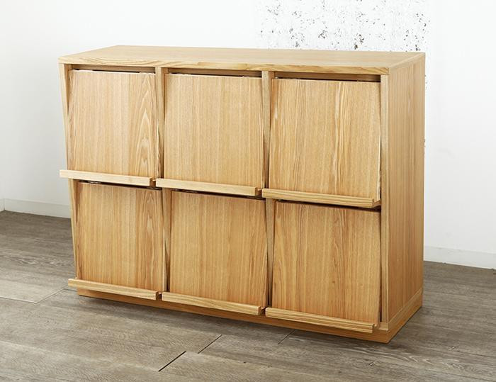 細部にこだわりを尽くし、デザイン性と機能性の両方を兼ね備えたマガジンラック。 【素材・塗装について】 ■弊社の家具はお客様に安心してお使い戴くために、建築基準法の規格となっている、F☆☆☆☆(フォースター)以上の素材を安心の品質で製作しております。 また天然木の色調や木目をそのまま引き出すために、透明のオイルを使用して仕上げております。 ■アッシュ材はタモ材の仲間で、はっきりとした綺麗な木目の表情や、加工性等から家具の高級木材として使われています。 色調の経年変化や、木目の表面に個体差があるお客様だけの一品ものとして、お楽しみいただけます。 【商品の詳細について】 ■扉の取手部分にはお好みの雑誌やCDなどを置いて、ディスプレイする事が出来ます。 ■扉の開閉は強度を保つよう工夫を凝らし、スムーズな動きを実現しました。 ■各扉の収納部には可動棚を1枚(合計6枚)設けて、30mmピッチの3段に調整が出来る、自由な収納スペースが作れます。 ■A4ファイルが収納できる内寸高さになっています。 ■可動棚を使うと単行本やCDケースなどが分割で収納できます。 ■構造上、扉に雑誌など物を置いた状態で扉を開閉する事は出来ません。 【製造について】 ■突板(フラッシュ構造)で製造しています。 ■収納内部や背面にも表面と同じ突板を使用しています。 ■木口の面材は3mm厚みにした無垢材を貼り合わせ、取手部分も無垢材を使用して手作業で加工しています。 角を丸くする面取り加工も手作業で行う、手間をかけた丁寧な造りにしております。 【塗料について】 弊社では子供用の玩具等にも使用される健康面にも安全な、ドイツ・リボス社のオイルを使用しております。 【生産者の声】 家具の産地、福岡県大川市で昭和32年の創業以来、培われた職人の技術、その「わざ」を現代の家具づくりに活かし、一品一品丁寧に製造しております。 ※注意事項※ ・画像は設置イメージです。ディスプレイや小物などは含みません。 ・マガジンラックを移動する場合は引きずらないように、行ってください。 ・色調や木目などはその都度違いがございますので、予め御了承願います。 ・事前に搬入経路のご確認をお願いいたします。 事業者:有限会社野中木工所 連絡先:0944-88-2525