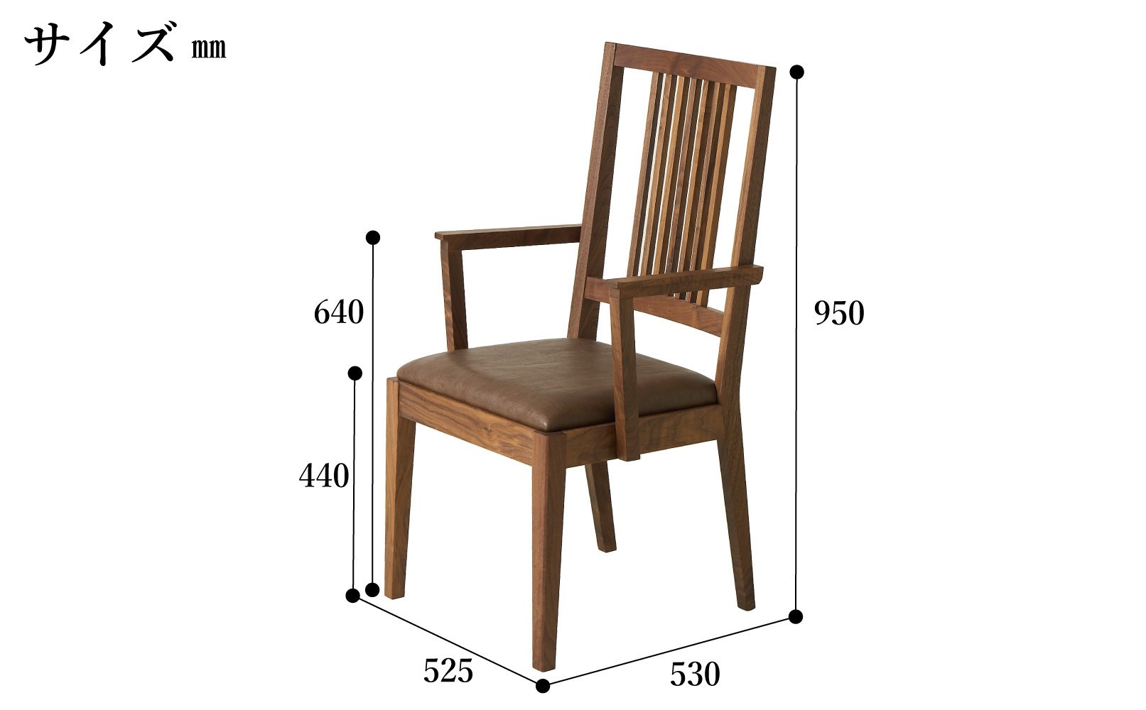 | 容量 | 【内容】 ダイニングチェア×1脚 【サイズ】 幅530×奥行525×高さ950[座面高440/肘高640](mm) 【素材】 木部:ウォールナット材 張地:PVC(合成皮革) , ファブリック(布地) 塗装:オイル仕上げ 【バリエーション】 布地:11色 [Anelka] 合皮:8色 [Baron] ※画像の生地見本よりお選び下さい。 【備考】 ・完成品 ・1個口でお届けします ※完全受注生産の為、ご注文後『約45~60日程度』納期を頂きます。予めご了承ください。 ※天然木を使用しているため、木目や節などの風合いや色合いがイメージ異なる場合がございます。 ※天然木の特長(木目や節、濃淡など)による『返品・交換』はお受けできません。 |