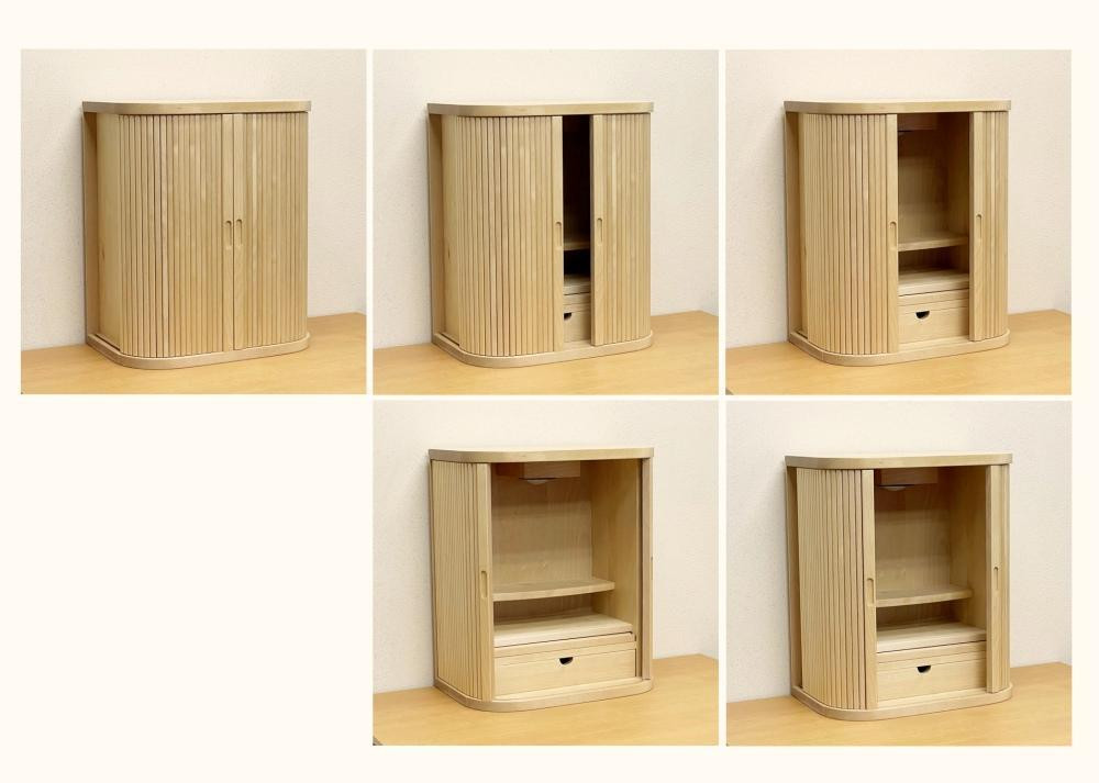 高級家具に使われる扉の開閉方法で細かいストライプが円弧に曲がりながら開閉します