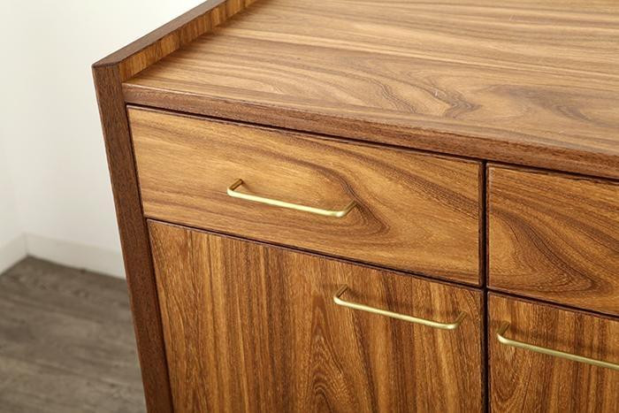 ■収納内部や背面にも表面と同じ突板を使用し、引出しの内部は桐シートを貼り合わせています。