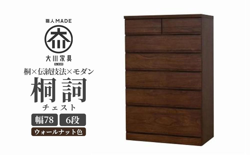 この自治体のポイントについてチョイス公式ポイント交換対象 チェスト 桐 タンス 幅78 6段 奥行45 ウォールナット色 桐詞 (きりことば) 桐たんす 箪笥 婚礼家具 衣類収納 大川家具【丸田木工】