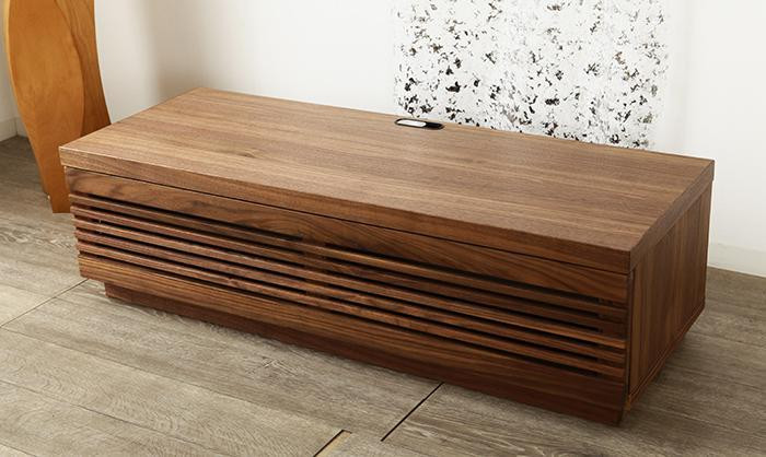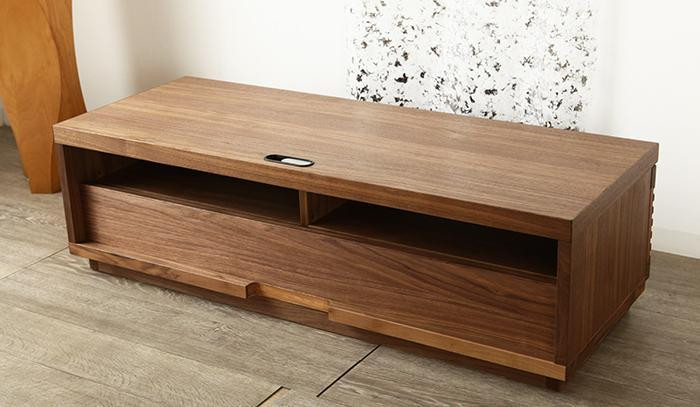 格子組の流れるような横ラインが印象的で、さまざまな室内空間にマッチする、ジャギーテレビボード。