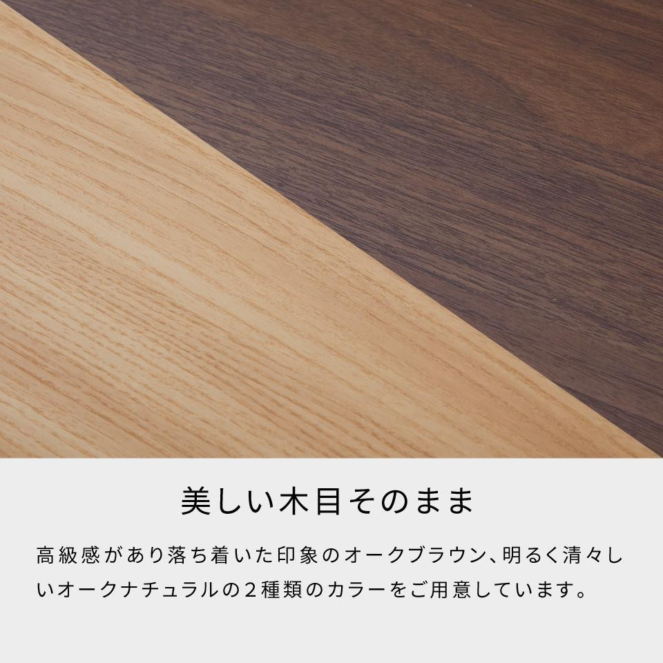 前面の美しい木目はオーク無垢材によるもの。やさしい木肌と天然木の温もりがお部屋に広がり、永く使うほどに風合いが広がります。