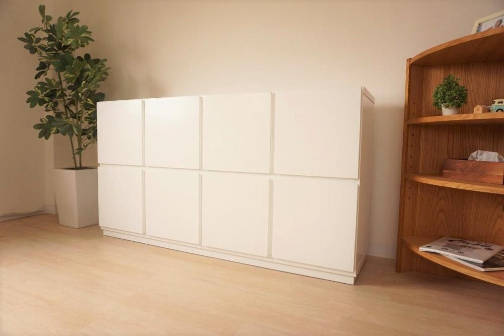 素材は天板・前面・側板と目に触れる場所にはすべて ホワイトの鏡面加工を使用しているので、とても高級感があります。