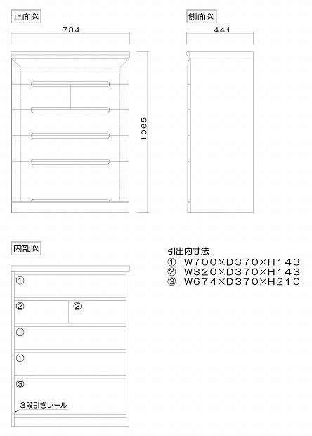 | 容量 | ■商品のサイズ(mm表記) 本体寸法:W784×D441×H1331 ■仕様 表面材:ニレ無垢材 天板:ポリ化粧合板 塗装:ウレタン塗装 引出し:桐箱組(あり組) 垣板:19mm厚(桐無垢) 底板:5mm厚(桐柾目突板) |