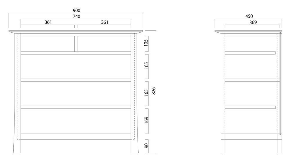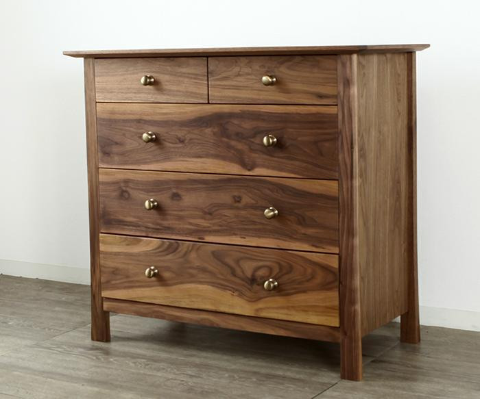■引出しの前板と脚部分は無垢材、その他は突板(フラッシュ構造)で製造しています。
