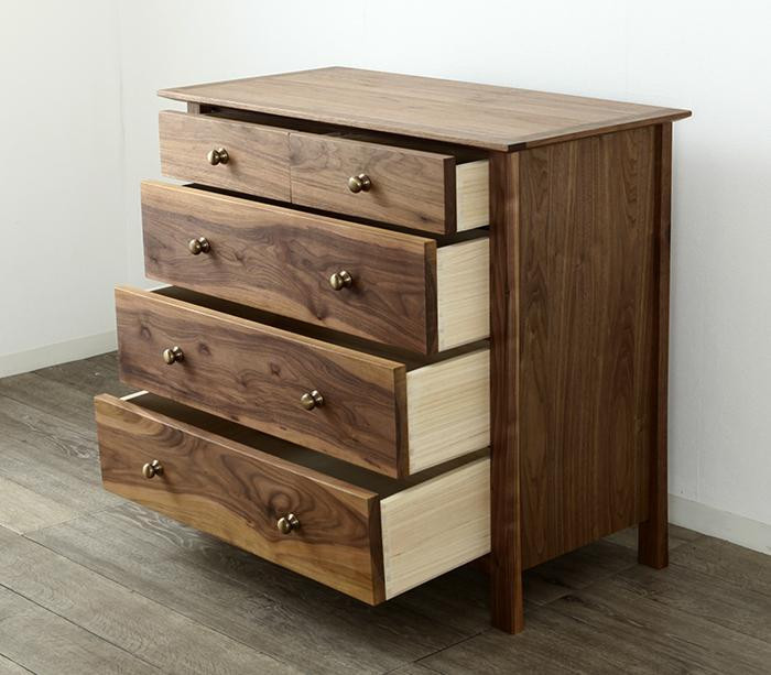 ■引出しの内部は桐シートを貼り合わせており、内箱は桐無垢材で、頑丈なアリ組を採用しています。