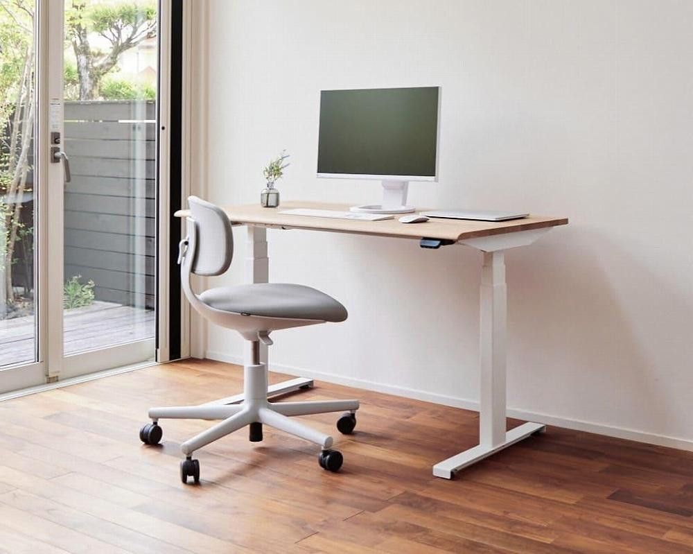 ホワイトフレームとの組み合わせは、ワークスペースに洗練された雰囲気と無垢材による上質感をもたらします。