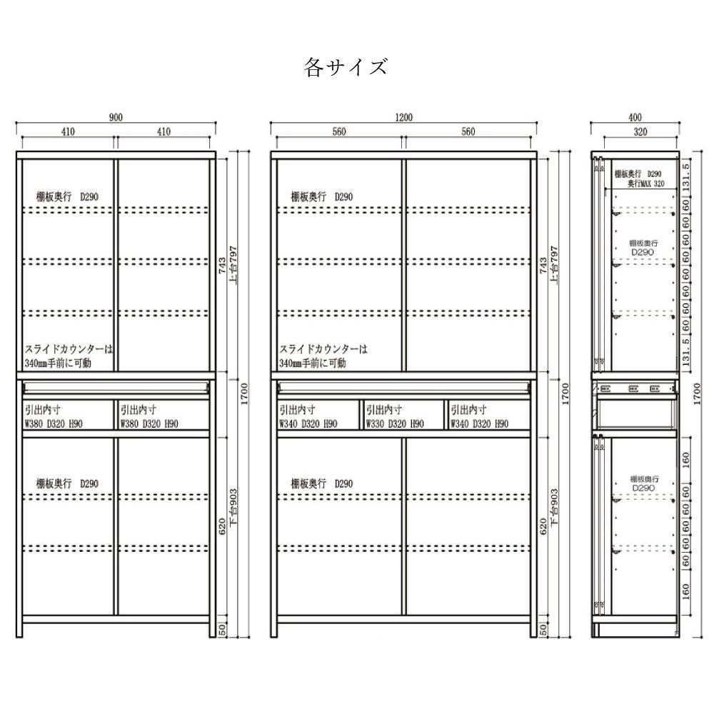 幅1200×奥行き400×高さ1700  mm表示