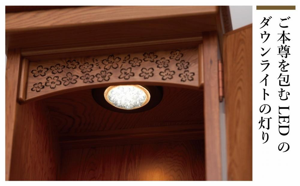 ライトをつけたら桜の花が浮き出て、とても可愛らしいお仏壇です。